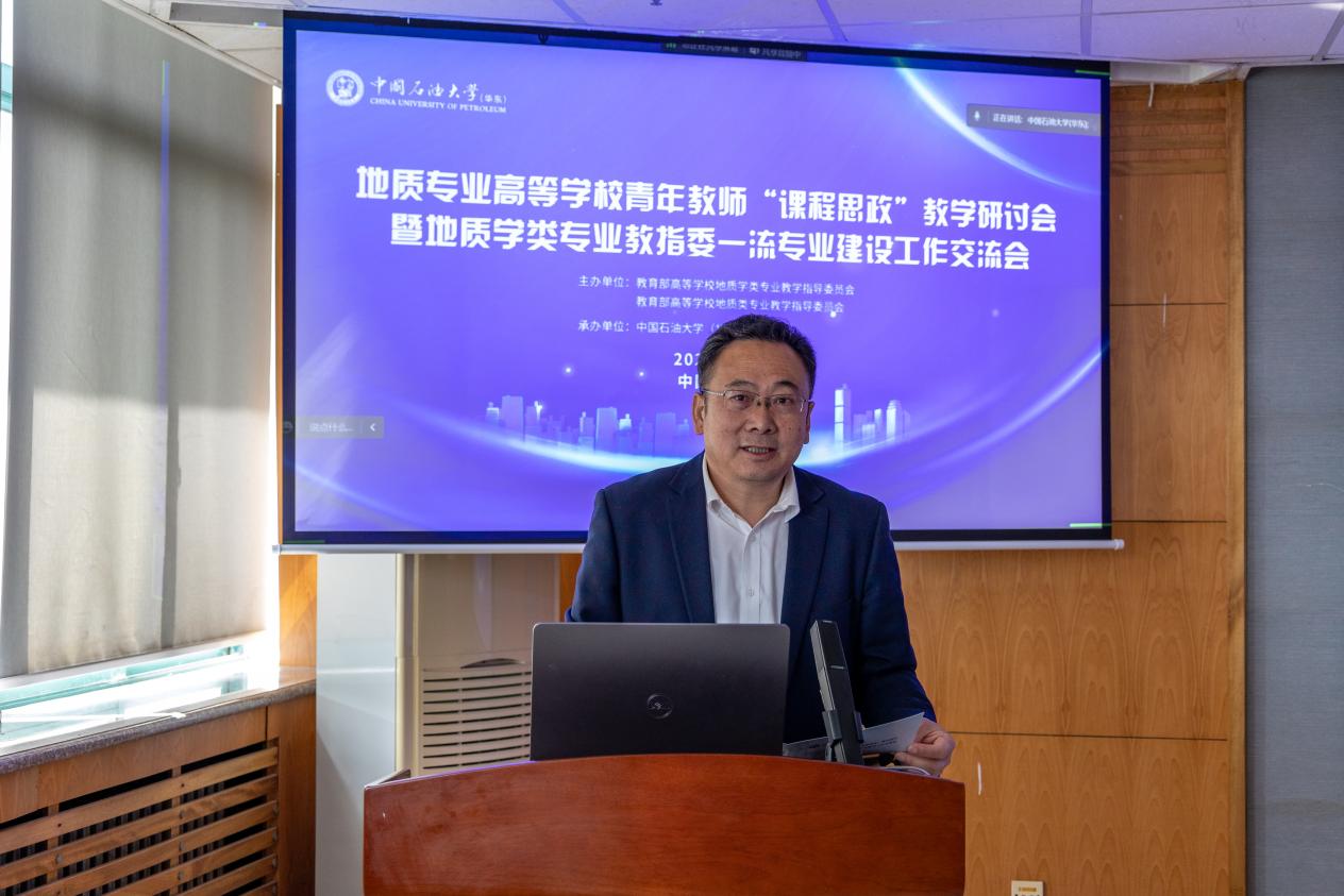 5月7日,由教育部高等学校地质学类专业教学指导委员会、教育部高等学校地质类专业教学指导委员会主办,beat365唯一官方网站承办的地质专业高等学校青年教师“课程思政”教学研讨会暨地质学类专业教指委一流专业建设工作交流会在我校召开。教育部高等学校地质学类教学指导委员会秘书长章军锋主持大会开幕式,主任委员赖旭龙和副主任委员、beat365唯一官方网站副校长操应长为大会致辞,beat365唯一官方网站教务处长侯影飞也出席了会议。来自北京大学、南京大学、吉林大学、中国科学技术大学、中国海洋大学、中国地质大学(武汉)、beat365唯一官方网站等20多所高等院校的120余名代表参加会议,其中线下参会代表80余人。