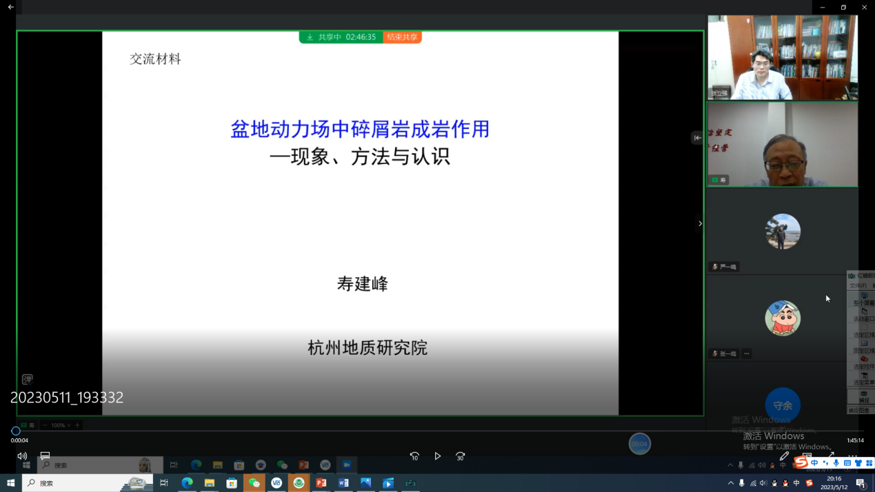 2023年5月11日晚,教育部“油气田开发地质课程组虚拟教研室”举办线上学术前沿公开课——名师讲坛,邀请了中国石油杭州地质研究院寿建峰教授作题为《盆地动力场中碎屑岩成岩作用——现象、方法与认识》的学术报告,资源系部分教师、地质资源与地质工程方向的硕士和博士研究生,以及来自全国十余所高校科研院所140余人参加了线上会议,教育部虚拟教研室主任、资源系主任张立强教授主持会议。