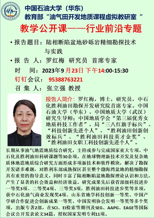 【预通知】教育部“油气田开发地质课程”虚拟教研室活动——教学公开课——行业前沿专题
