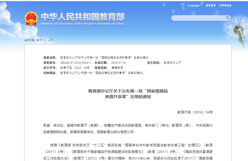 2016年6月,教育部办公厅关于公布第一批“国家级精品资源共享课”名单(教高厅函〔2016〕54号),我院油气地质与勘探、沉积岩与沉积相、构造地质学等3门课程入选。