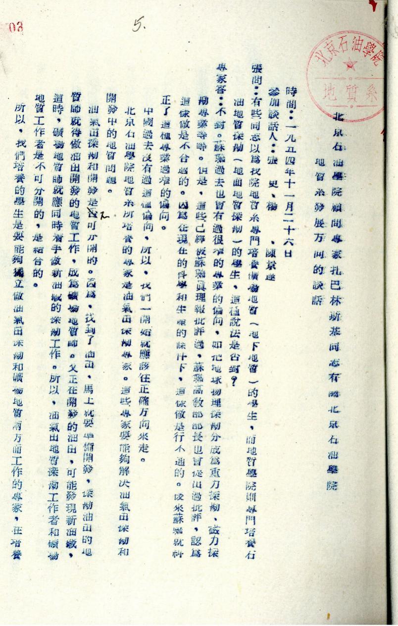 学校从1954年起开始聘请苏联专家到校指导工作。1954年1月,石油地质专家巴维尔·彼得洛维奇·扎巴林斯基受聘我校,他是第一位到我校工作的苏联专家,同时被聘为院长顾问,获授来华苏联专家中华人民共和国勋章。