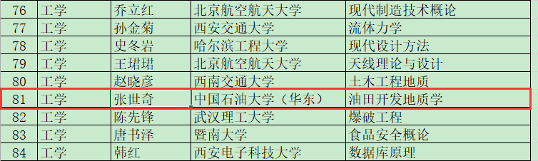 2016年12月,教育部公布第二期来华留学英文授课品牌课程评选结果。我院张世奇教授主持申报的“油田开发地质学”课程入选。