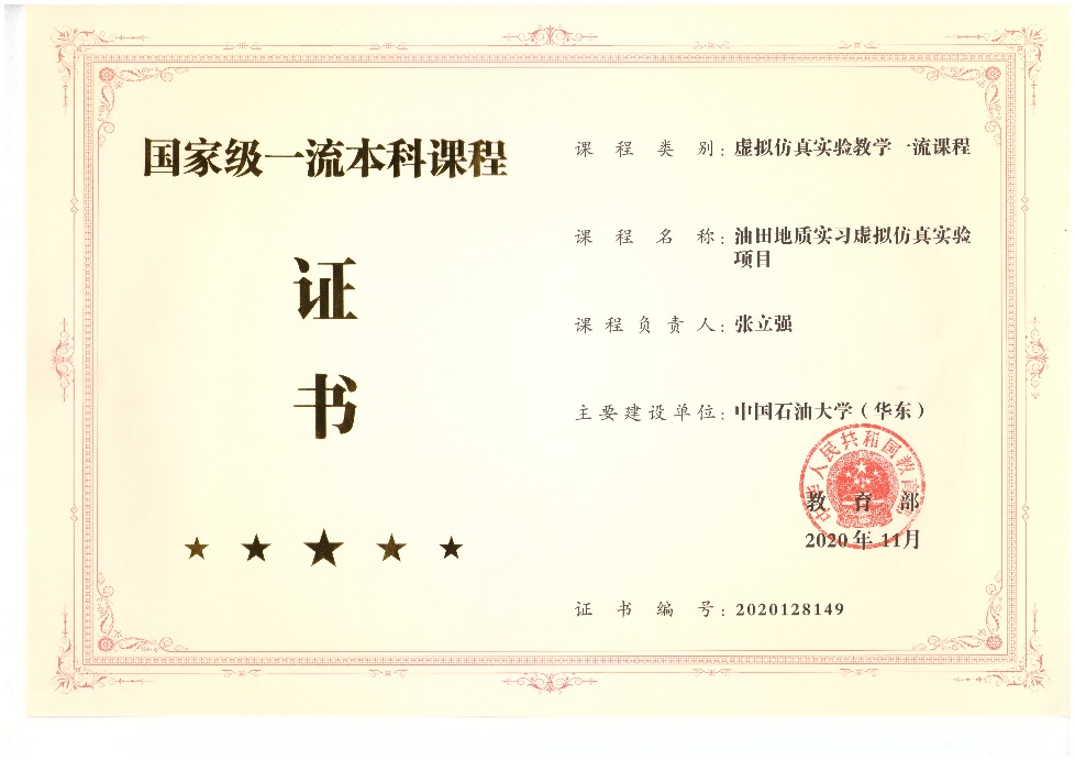 2020年11月,教育部公布首批国家级一流本科课程名单,我院地震勘探原理、矿物岩石学、油气地质与勘探、油田开发地质学等4门课程入选。