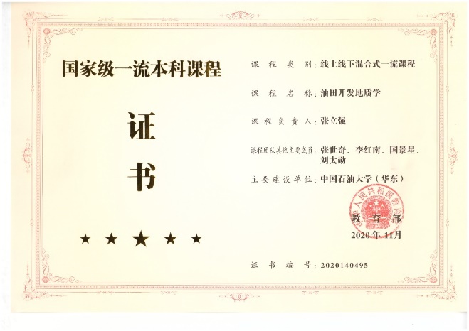 2021年6月,我院张立强、张世奇、国景星、李红南、刘太勋、宋璠、张宪国、赵建华负责的《油田开发地质学》入选国家课程思政普通本科教育示范课程,授课教师入选国家课程思政教学名师和教学团队。