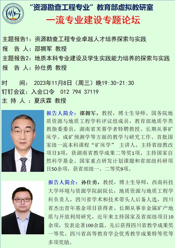 【预通知】教育部“资源勘查工程专业”虚拟教研室活动——一流专业建设专题论坛