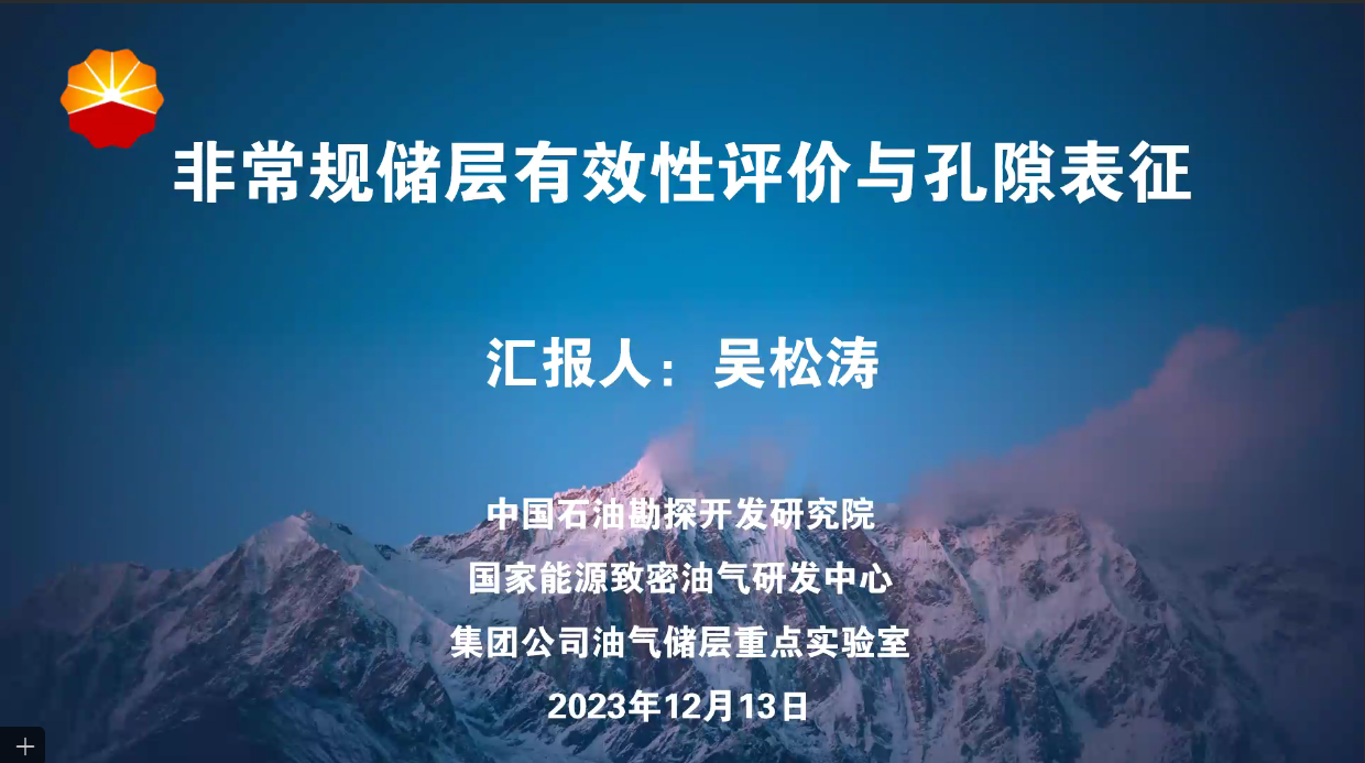 2023年12月13日,教育部“资源勘查工程专业虚拟教研室”、“油气田开发地质课程虚拟教研室”联合举办线上学科前沿专题讲座。本次讲座特邀中国石油勘探开发研究院吴松涛高级工程师,作题为“非常规储层有效性评价与孔隙表征”的学术报告,来自beat365唯一官方网站、中国地质大学(武汉)、中国矿业大学、西北大学、山东科技大学、贵州大学等全国十余所高校的教师和我院2023级地质资源与地质工程专业研究生共 110余人参加了线上、线下会议,教研室主任蒋有录教授主持会议。