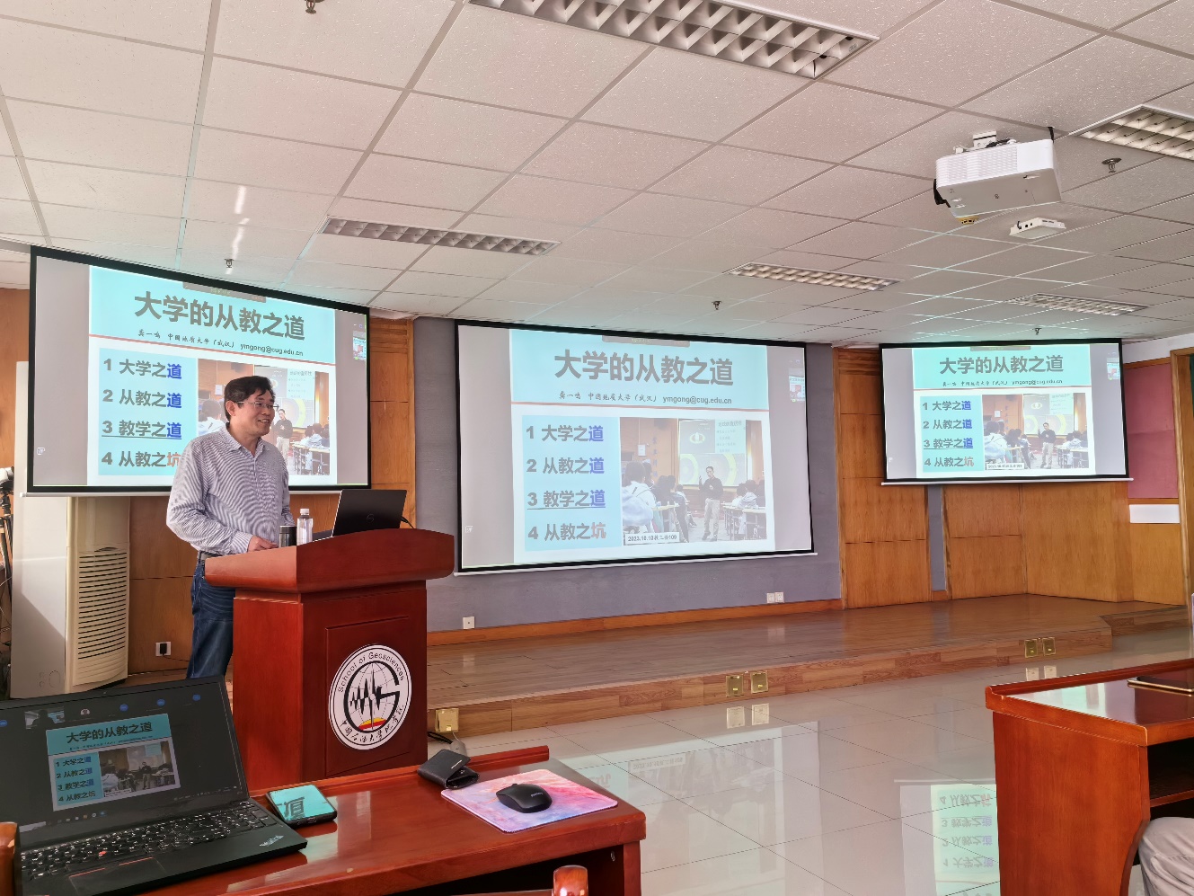 龚一鸣教授以“为了谁”、“教什么”和“怎么教”三问引出教学之道的重要性,他强调,教学之道的最高的标准是引导学生发现真理,这要求教师们统筹好“课以四教”,包括教人格、教智慧、教能力和教知识四方面,其内涵体现在知识是真理的谜面、能力是解谜的行为、智慧是解谜的指引、人格是解谜的保障。最后,龚一鸣教授结合多年教学经历,提出了“7有”课堂教授法,即教师在课堂上,要有感染力、有定力、有穿透力、有吸引力、有魅力、有调控力和有魔力,把握好课堂内容,做到终善始终。