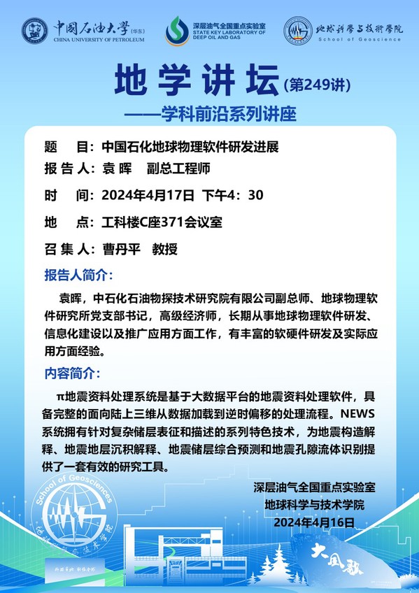 【地学讲坛第249讲】关于袁晖副总工程师学术报告的通知