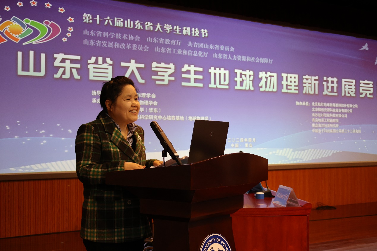 胡敏在致辞中表示,大学生地球物理新进展竞赛可以充分展示各参赛高校地球物理专业学生的整体素质和综合运用地球物理专业知识的能力,为丰富和发展地球物理专业人才培养与教学积累大量的经验。希望山东省地球物理学会能够继续为全省以及省外地球物理行业科技工作者和教育工作者之间搭建沟通交流的桥梁,为地球物理行业培养青年人才、储备后备力量做贡献。