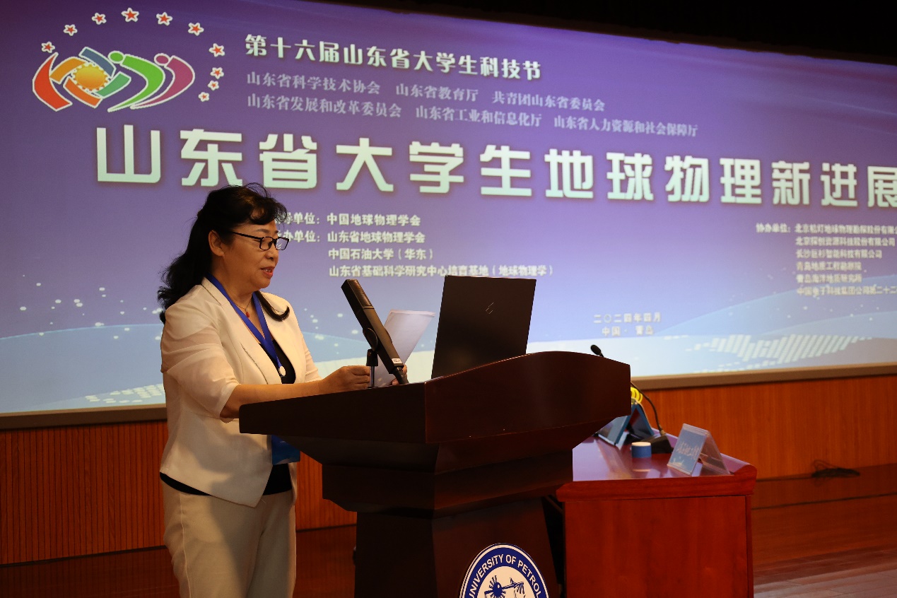 中国地球物理学会副秘书长胡敏、山东省科学技术协会创新服务中心部长张玲、山东省地球物理学会理事长张善法、beat365唯一官方网站副校长周鹏出席开幕式并致辞。beat365唯一官方网站院长宗兆云主持开幕式。