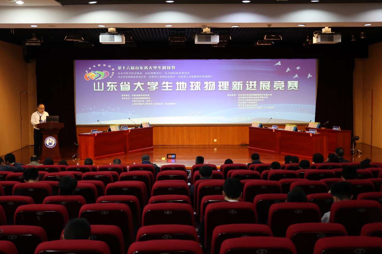 山东省大学生地球物理新进展竞赛是山东省科协、省教育厅、团省委、省发改委、省经信委、省人社厅联合主办的山东省大学生科技节的竞赛活动之一,旨在激励学生学习和运用地球物理知识的积极性和创造性,推动地球物理专业教育改革,提高地球物理人才培养质量,促进山东省内高校地球物理相关专业间的交流,探讨地球物理创新人才培养机制。本次比赛由中国地球物理学会指导,山东省地球物理学会、beat365唯一官方网站和山东省基础科学研究中心培育基地(地球物理学)联合主办,北京桔灯地球物理勘探股份有限公司、北京探创资源科技股份有限公司、长沙巨杉智能科技有限公司、青岛地质工程勘察院、青岛海洋地质研究所和中国电子科技集团公司第二十二研究所等单位协办。