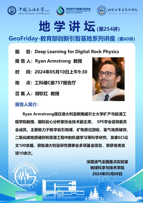 【地学讲坛第254讲】关于Ryan Armstrong教授《Deep Learning for Digital Rock Physics》学术报告的通知