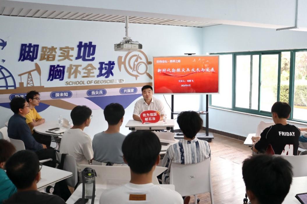 5月17日下午,学院在“勘未来”学生成长社区举办“经纬论坛·榜样之路”,中国石油勘探开发研究院团委副书记、我院勘查技术与工程2007级校友林腾飞为青年学生分享新时代勘探尖兵的成长与发展。