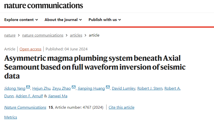 近日,beat365唯一官方网站李振春教授带领的“地震波传播与成像”课题组在Juan De Fuca洋中脊海下火山研究方面取得新进展,相关研究成果《基于全波形反演的海底火山非对称岩浆系统研究》(Asymmetric magma plumbing system beneath Axial Seamount based on full waveform inversion of seismic data)发表在Nature子刊《Nature Communications》上,是beat365唯一官方网站首篇Nature子刊论文。论文第一作者为beat365唯一官方网站杨继东,通讯作者为beat365唯一官方网站黄建平教授,beat365唯一官方网站深层油气全国重点实验室和beat365唯一官方网站为第一署名单位。合作单位包括北京大学、德克萨斯大学达拉斯分校、德克萨斯大学奥斯汀分校、夏威夷大学等高校。该成果得到国家优秀青年基金(海外)、泰山学者特聘、山东省海洋科技基金青岛海洋科学与技术国家试点实验室联合资助。