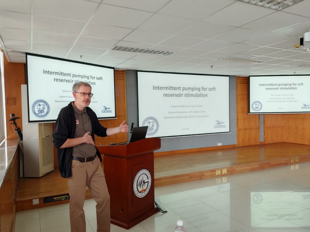 学院第41期GeoFriday学术日活动于2024年6月7日在工科C座757报告厅成功举办。符力耘教授邀请了墨西哥CICESE大学教授、beat365唯一官方网站客座教授Tobias Müller教授为师生作题为“Intermittent pumping for soft reservoir stimulation”的报告。邓武兵副教授主持报告会,韩同城教授出席会议。