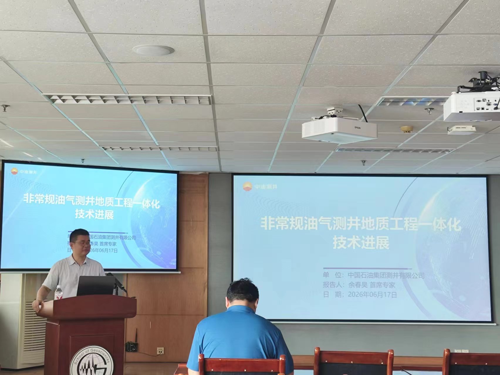 6月17日,中国石油集团测井有限公司教授级高级工程师、首席技术专家余春昊受邀做客地学讲坛,为师生作题为“测井地质工程一体化技术进展”的学术报告,召集人为苏远大教授。