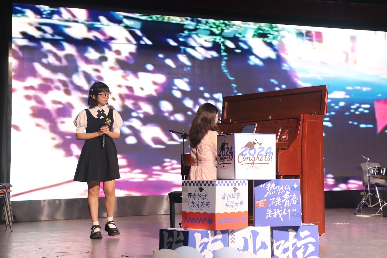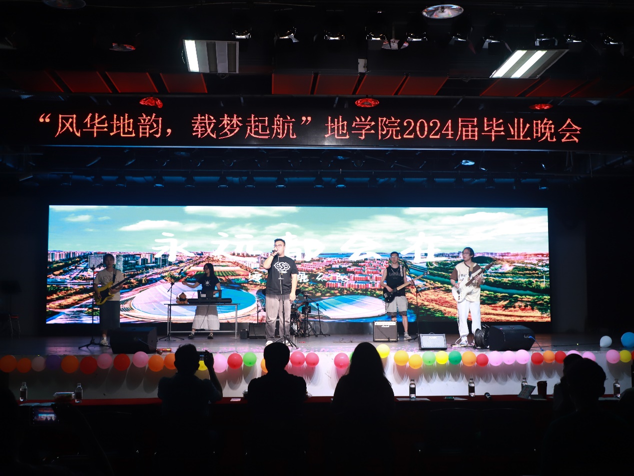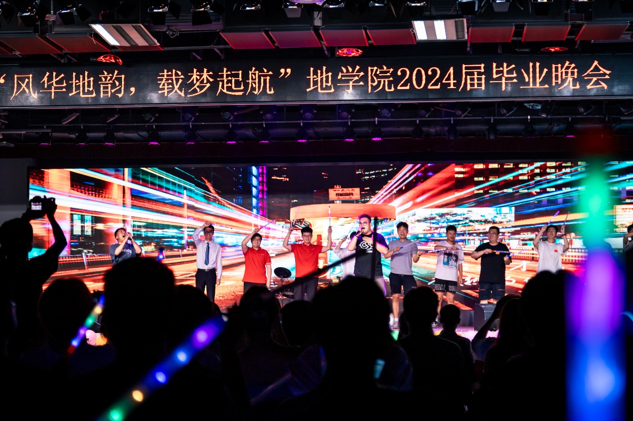 由零卡糖乐队带来的歌曲《永远都会在》在重刷吉他与轻拨细弦间、黑与白的琴键交错间、大鼓与小鼓含蓄交错敲击间将情感表达到极致;辅导员队伍带来的歌曲《启程》表达了对毕业生的深深不舍与希望,祝福毕业生们保持热爱,一路前行;地物2002班毕舒然、乔莎莎带来的器乐弹唱《那个夏天》清新而纯净,温暖而明媚,照亮了每位观众心中的角落。