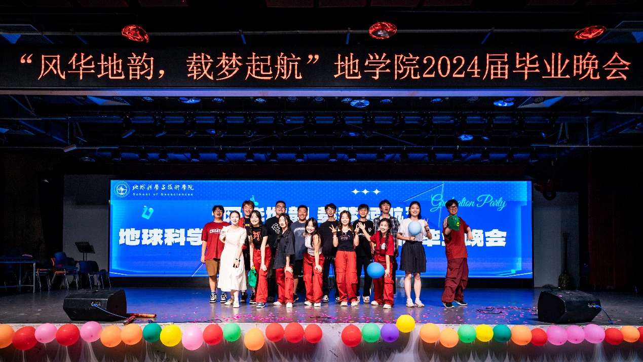 6月22日晚,学院2024届“风华地韵,载梦起航”毕业晚会在唐岛湾三楼多功能厅举办。学院党委书记牛庆玮,党委副书记郑珊珊,资源系党支部书记、系主任张立强,地质系主任吴孔友,测井系党支部书记谭宝海,班主任代表杜启振,学院学生工作队伍以及全体2024届毕业生参加晚会。毕业晚会由学院教职工、2024届毕业生、艺术团等带来精彩纷呈的节目,毕业班辅导员徐明权、张艳芳,毕业生王圣钧、张泽宇主持。