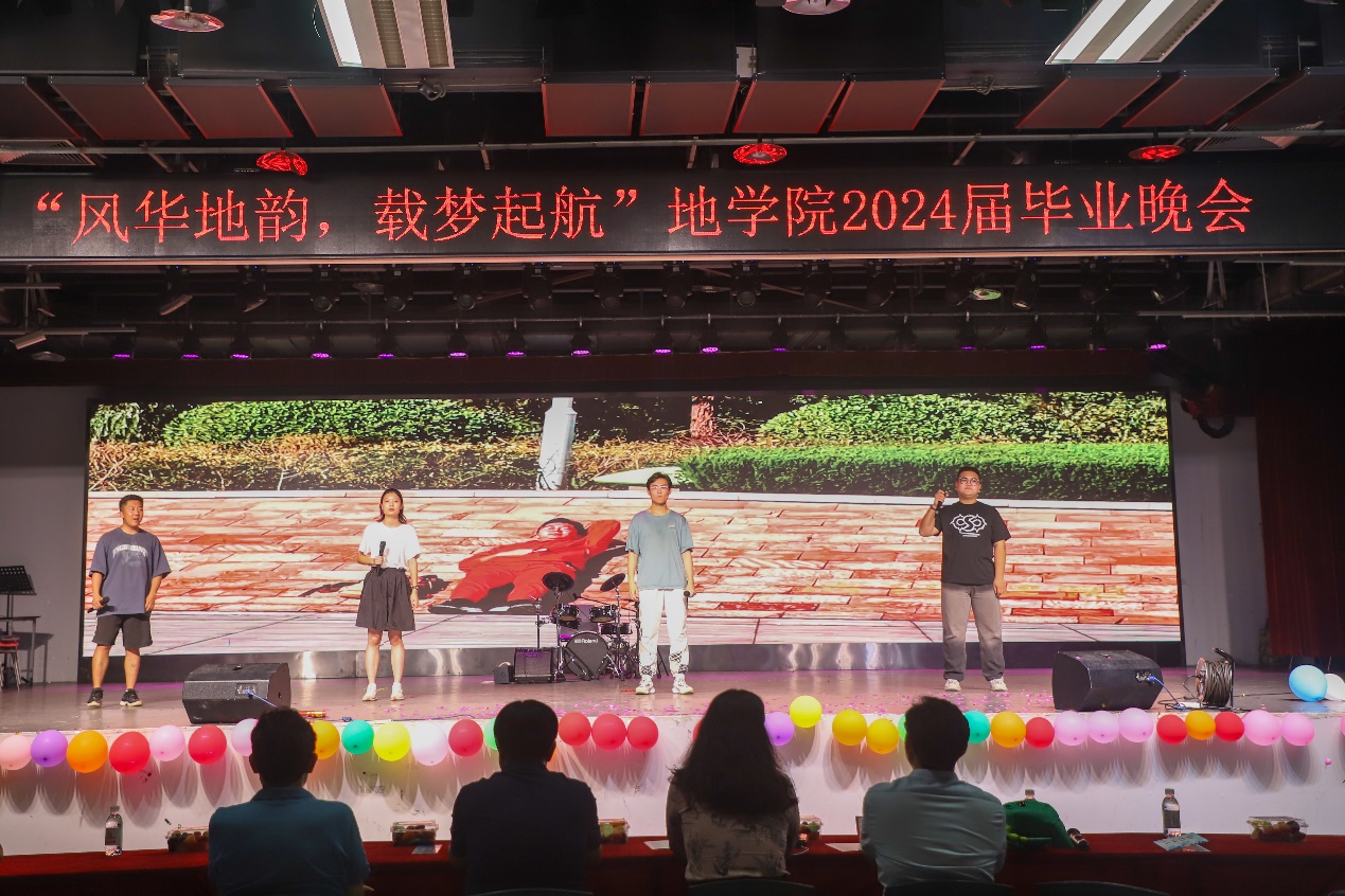 晚会在地物2001班与学校传统武术协会带来的武术表演拉开序幕,当神气十足的舞狮亮出“勘探报国,我辈先行”的标语时,瞬间燃起了全场氛围;在欢呼与喝彩中,由林姝含、邢伯申等人带来的毕业歌曲串烧带同学们回顾大学时光的点滴;SM广场舞女团带来的舞蹈《Supernova》激情澎湃,活力四射,赢得热烈掌声;2020级本科生班长团支书、田治康、乌达木带来的歌曲《牧马城市》将观众带入一个充满希望和激情的世界,激励毕业生勇敢面对生活中的挑战。