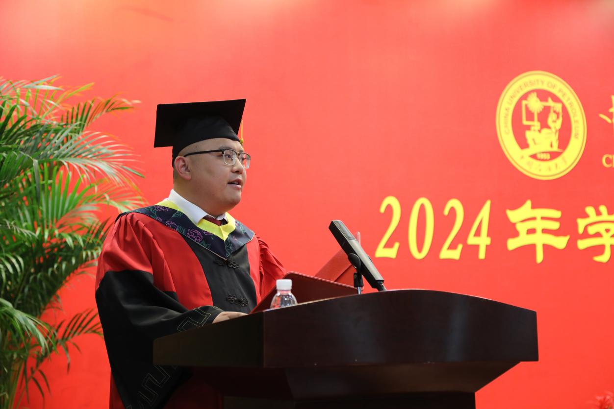宗兆云表示,2024届毕业生在疫情期间入校,经受住了一次次的严峻考验,展现出“双一流”、龙头学院青年学子积极向上的精神风貌和新时代青年的责任担当,是学院最靓丽的名片。同时,也见证了学院的高质量发展。在新的一轮“双一流”学科建设中,地球科学学科ESI世界排名前1‰;2023软科发布的中国最好学科排名中,地质资源与地质工程排名全国第2;新增深层油气全国重点实验室;联合申报获批科技部中国-沙特石油能源“一带一路”联合实验室;获批全民科学素质工作先进集体、全国党建工作标杆院系。今天的地学院,正朝着“努力建成油气地学学科世界一流的高水平研究型学院”的宏伟目标昂扬奋进!