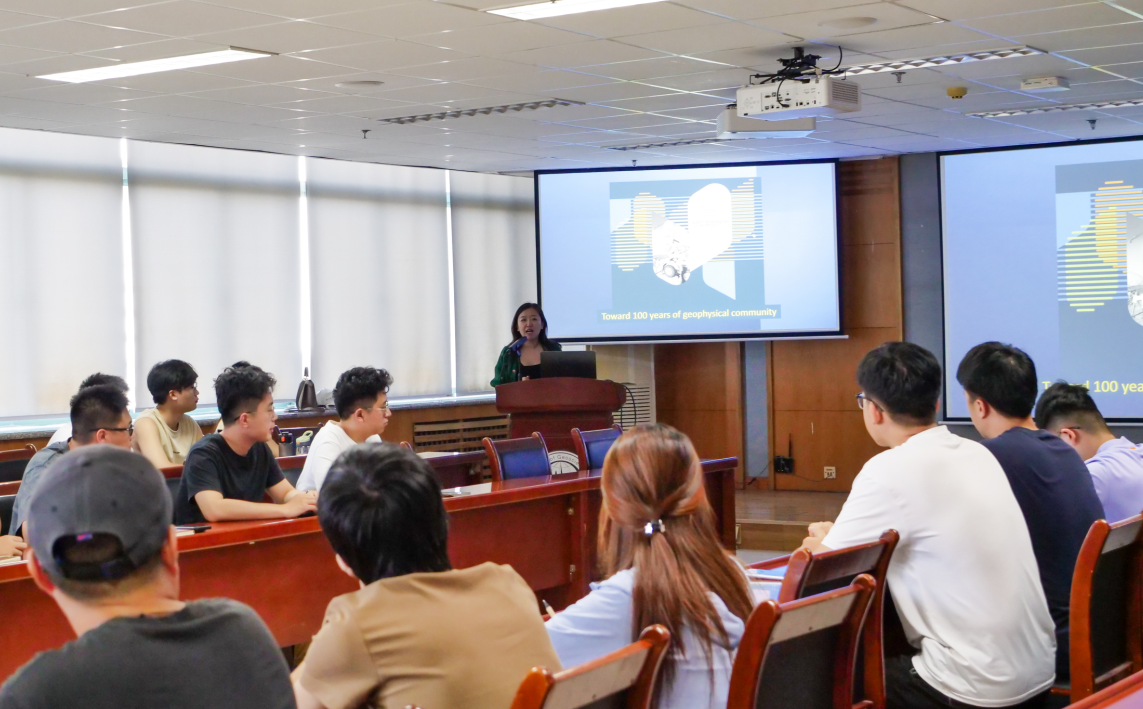 分享会上,吴敬宇向研究生介绍了全球最大的地球物理学家们的社群舞台——国际勘探地球物理学家学会(以下简称SEG)的基本情况,对SEG官方网站期刊及学术会议、SEG基金会计划资助学生项目情况、研究生如何成为SEG会员及如何参与SEG基金会资助项目等进行详细介绍。她强调,SEG不断致力于年轻地球物理学家的培养,国际上非常重视如何激发中国青年地球物理学家深度参与和融入到SEG,也热烈欢迎广大青年学子积极参与SEG项目,在地球物理行业贡献出自己的一份力量。