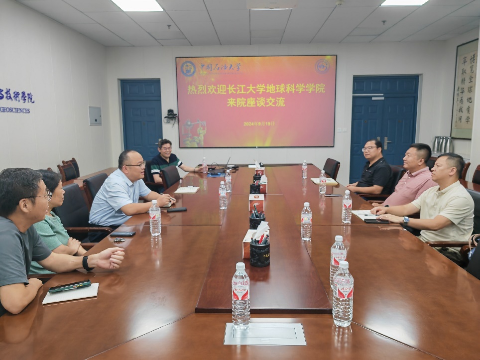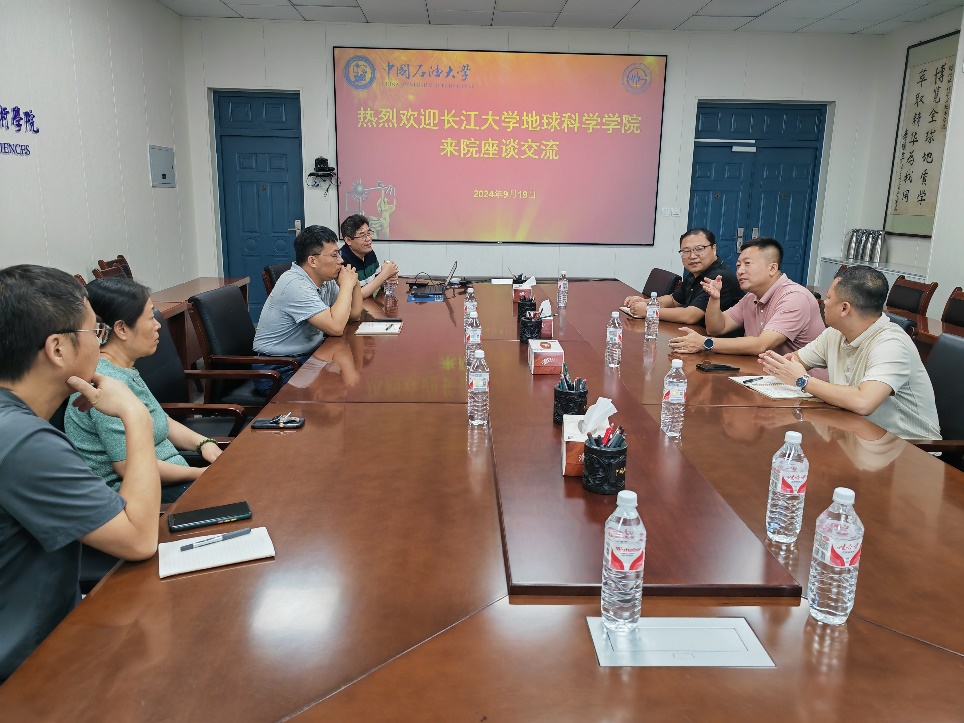 2024年9月19日,长江大学地球科学学院常务副院长吴楠一行来我院调研交流。学院院长宗兆云,副院长张宪国,资源系主任、党支部书记张立强,资源系教师,教学秘书等参加座谈交流,座谈会由副院长张宪国主持。