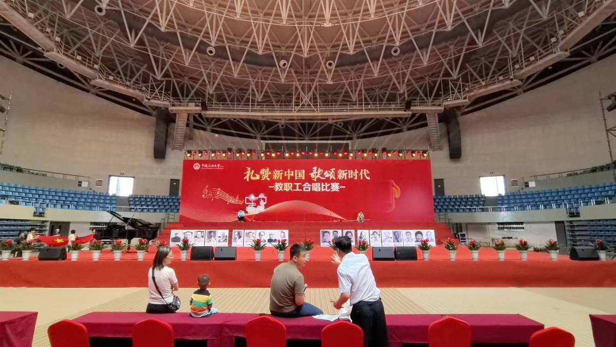 9月23日练习,这是人数相对多的一次,大家太忙了!开学初有1000多人的全国地质大赛,地质系、资源系很多老师在忙,后来测井系到杭州开测井大赛,再后来地球物理系在南京物探院有个地球物理大赛,9月份确实太忙,客观上说有一部分老师到上台还歌词不熟,不敢唱,导致整个音量还是有点小。