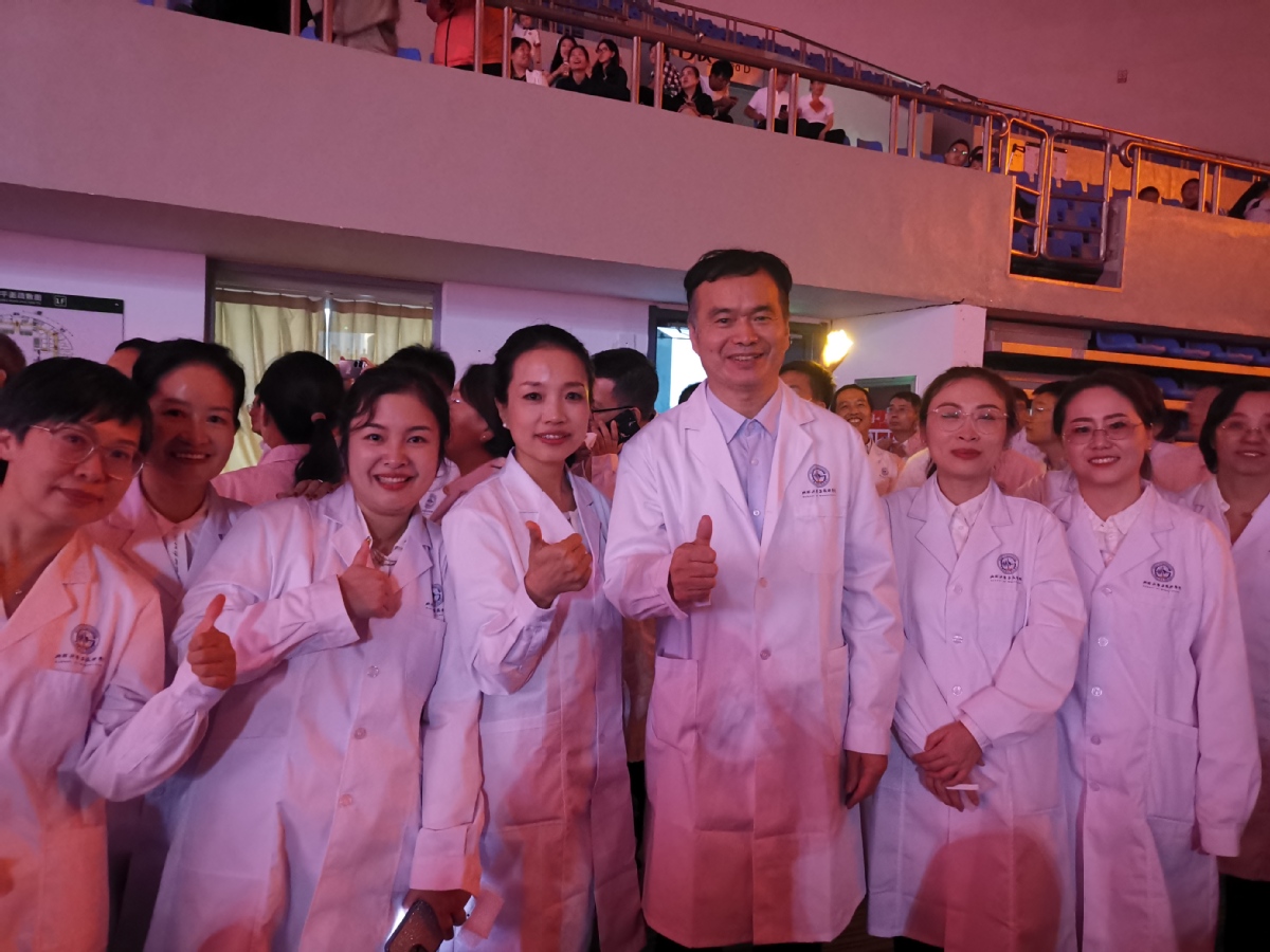 学院领导最近也是非常忙,但书记、院长都亲自上,一个担任评委、一个上台演唱。