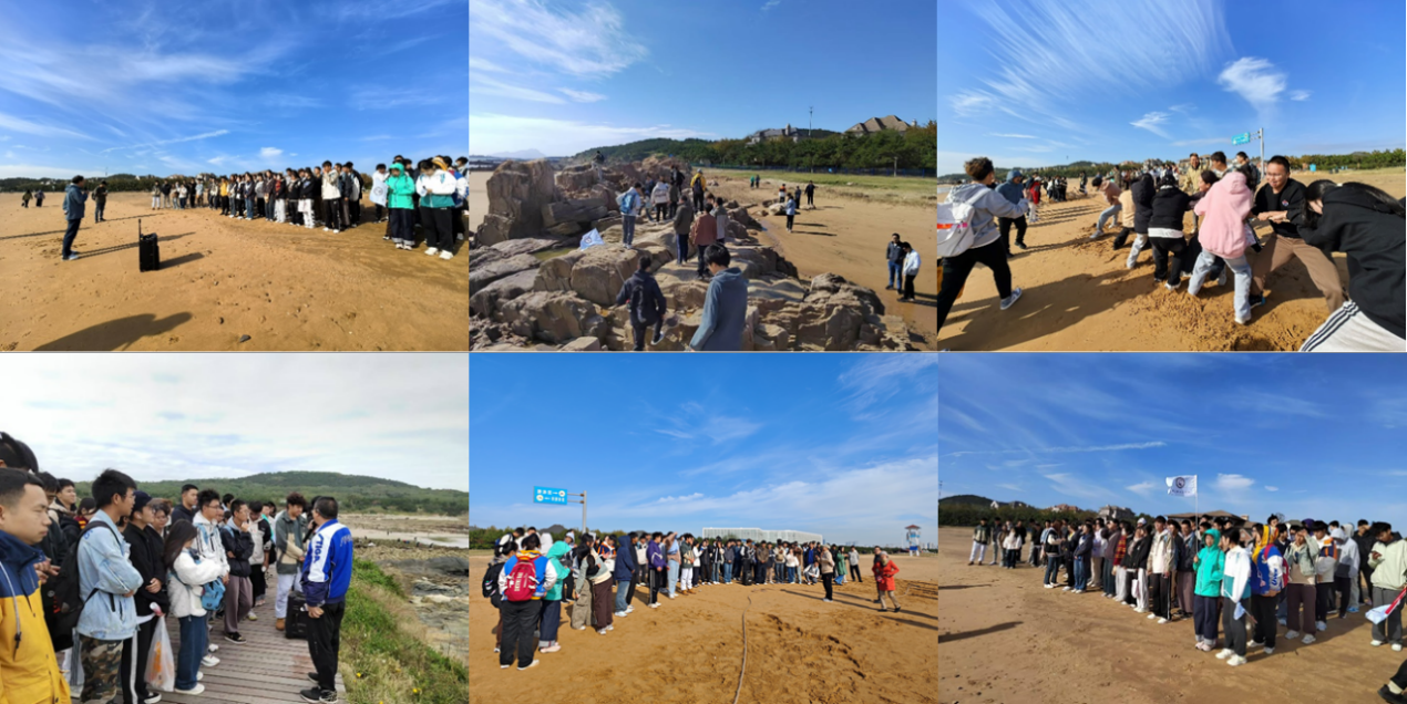随后,活动以一场别开生面的师生拔河比赛拉开序幕,同学们拧成一股绳、汇成一股劲、聚成一条心,在沙滩上留下了青春的足迹,感受户外活动的无穷魅力,充分展现了地质人团结进取的勘探精神。陈世悦、吴智平和邱隆伟三位老师分别以“银沙滩海岸地貌探秘”、“灵山岛地质成因解析”和“连三岛基岩特征解读”为主题,用生动有趣的语言和鲜活的实例,将深奥的地质知识转化为同学们易于理解的内容,在“行走的课堂”中提升同学们对地质科学的认知与热爱。在步行前往连三岛的途中,学业导师与同学们针对沿途的地质现象进行了深入的讨论和交流,导师们耐心解答了同学们关于生涯规划、学业指导等方面的疑惑,帮助他们明确了学业目标,树立了专业自信。