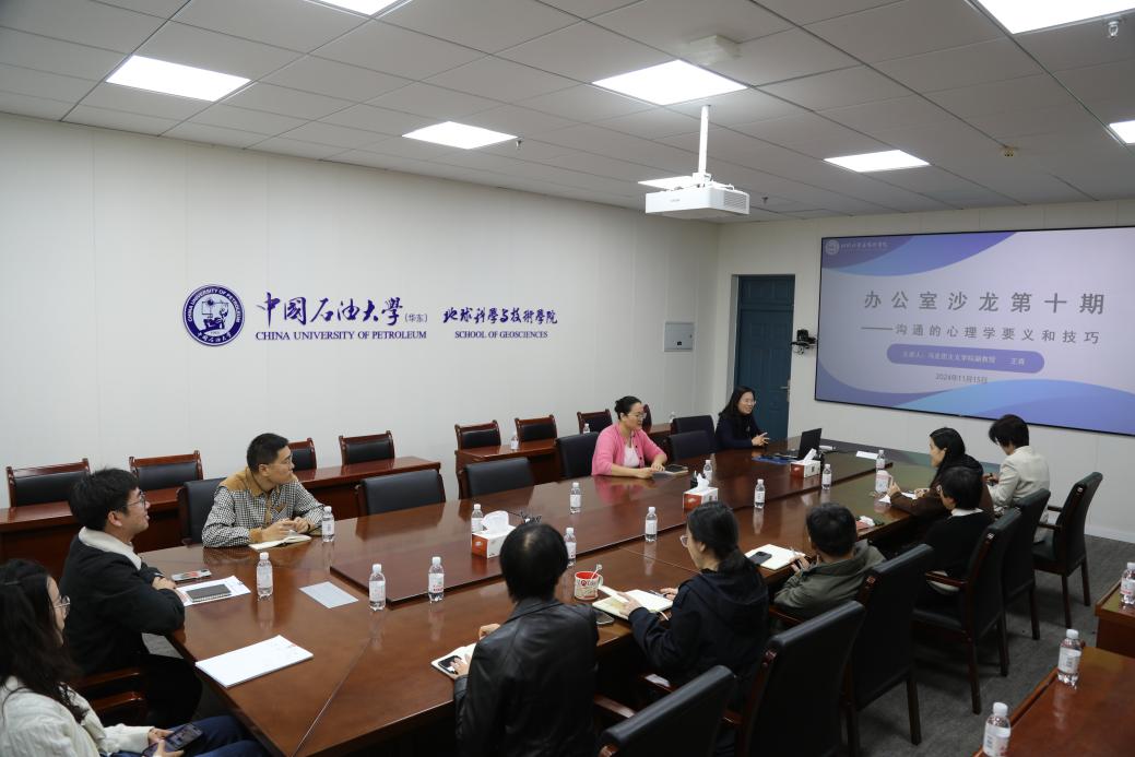 为进一步提升学院机关工作人员的沟通能力,加强办公室队伍建设,11月15日,学院在工科C251会议室举行办公室沙龙第十期,邀请马克思主义学院副教授、国家二级心理咨询师王青讲授《沟通的心理学要义和技巧》,学院办公室全体成员参加活动。