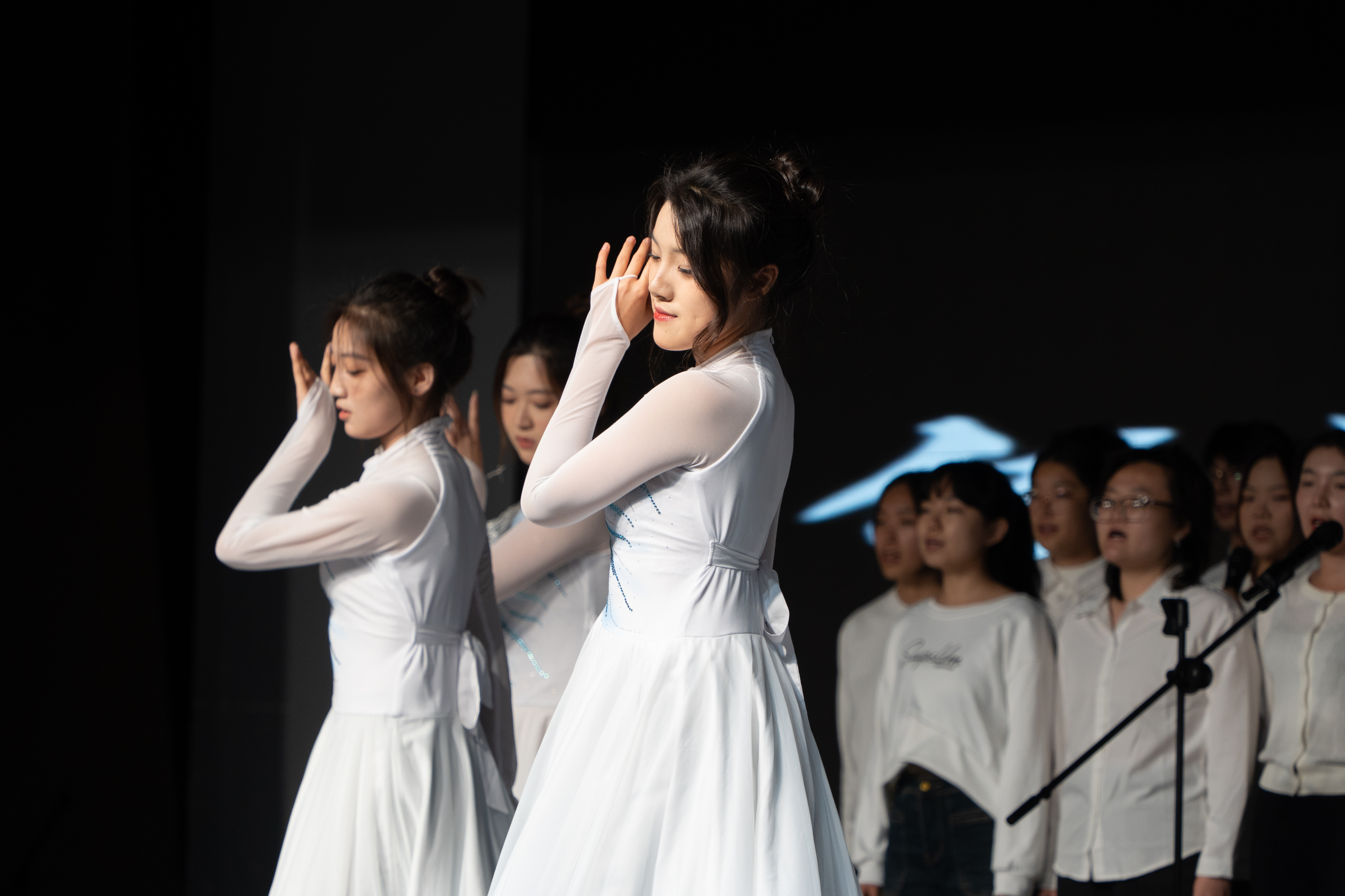 开场之时,全体合唱成员安静地现在舞台上,伴随着歌曲前奏的旋律缓缓响起,全场灯光渐亮,照亮每一位同学,为整场表演奠定了温暖感人的基调。随后,全体合唱成员齐声合唱歌曲的第一部分。当歌曲到达副歌时,全场氛围被点燃,在欢呼和喝彩中,将观众带入了一个充满温暖感人的世界。