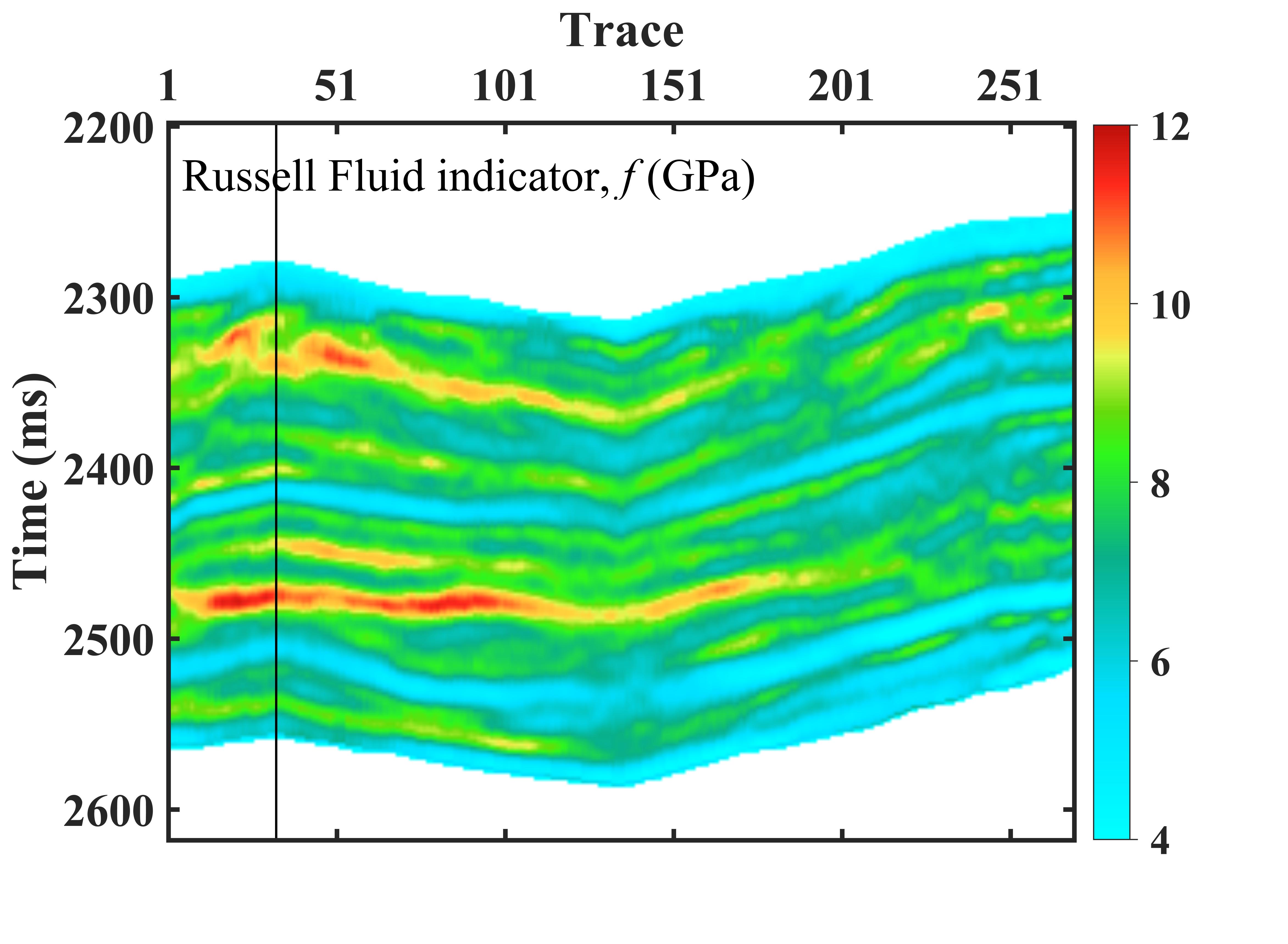 图4 叠前地震剖面(a)和流体因子反演结果(b)