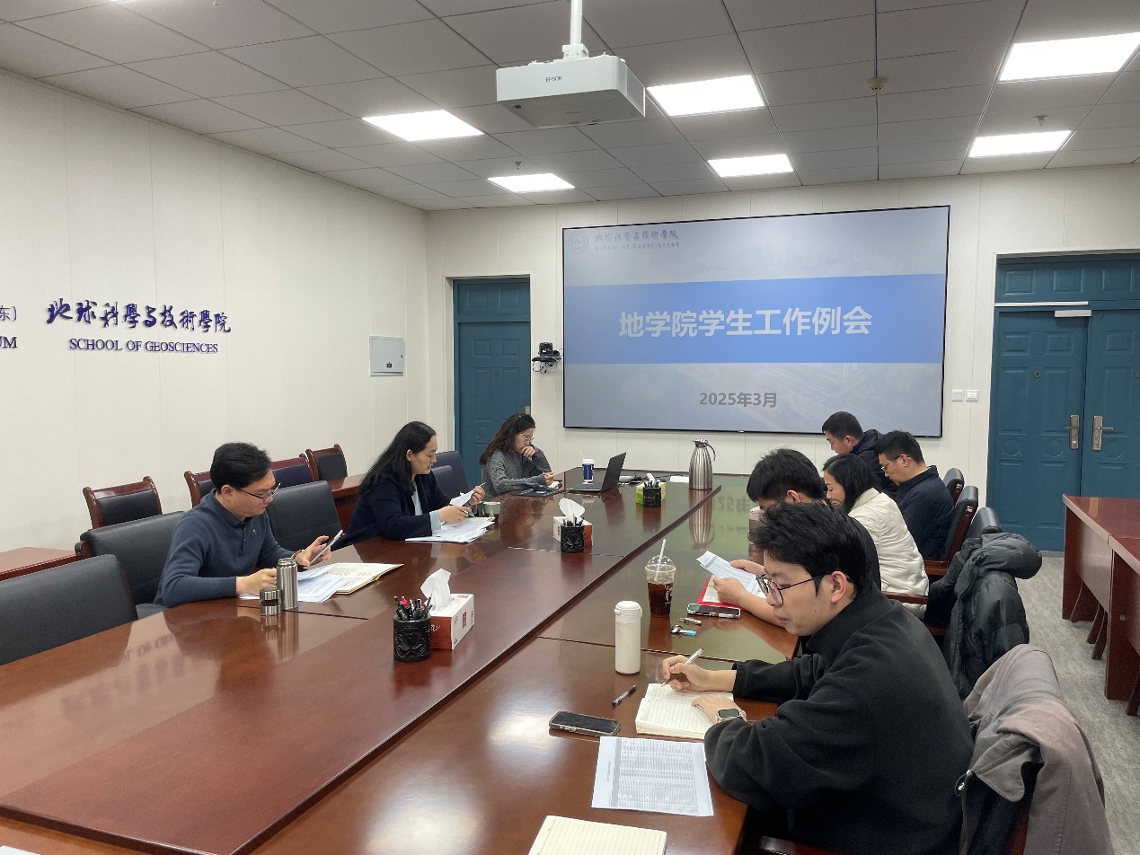 结合新学期学生工作会议精神,会议对学院《2025年学生工作要点》进行了安排和部署。郑珊珊强调,2025年是“十四五”收官和“十五五”谋划的关键之年,面对学生工作内容更加复杂、节奏加快的形势,学院学生工作队伍要强化学习研究,在教育管理实践中探索和谋划新时代立德树人工程的“地院方案”。继续坚持一线原则,协同各方力量用心用情、关心关爱学生,一是要不断提高自身政治素养与业务能力,善于学习新知识、新技术、新理论,推动智慧学工建设;二是要继续把学风建设作为打开工作局面的关键任务,用学风抓管理,进一步为学生营造风清气正、昂扬向上的学习生活氛围;三是要夯实日常管理,抓严抓细,做到“三必巡、六必谈”,把思想政治教育融入日常,筑牢安全稳定防线。
