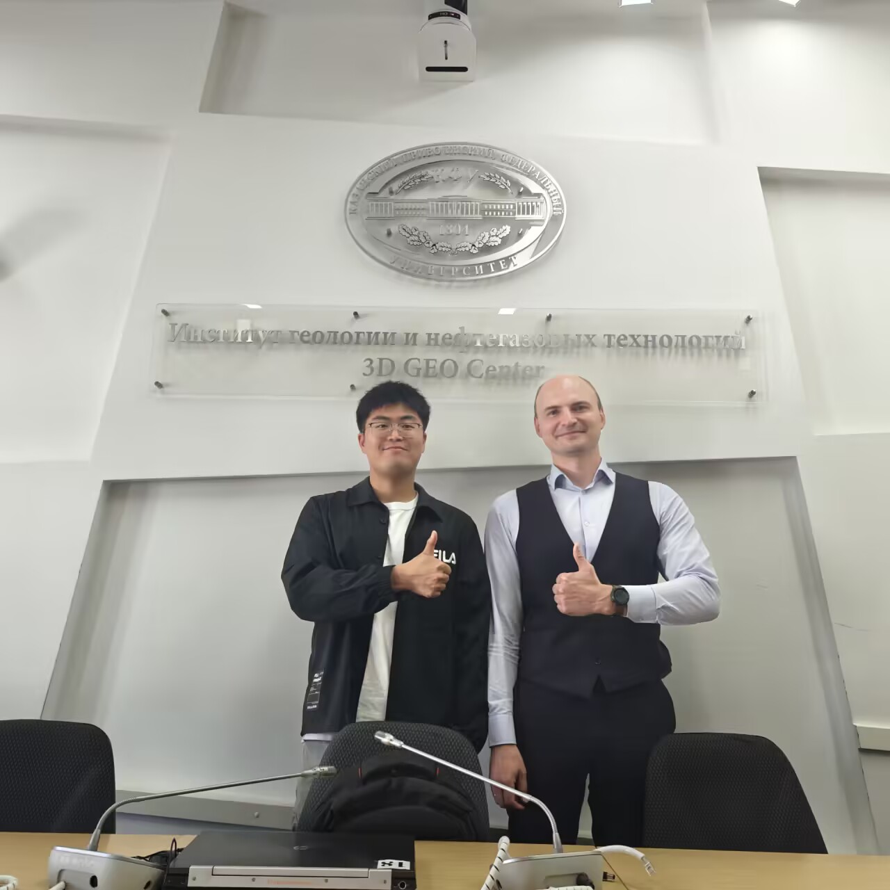 研究生柳远和喀山联邦大学大学项目负责人Platov Boris合影