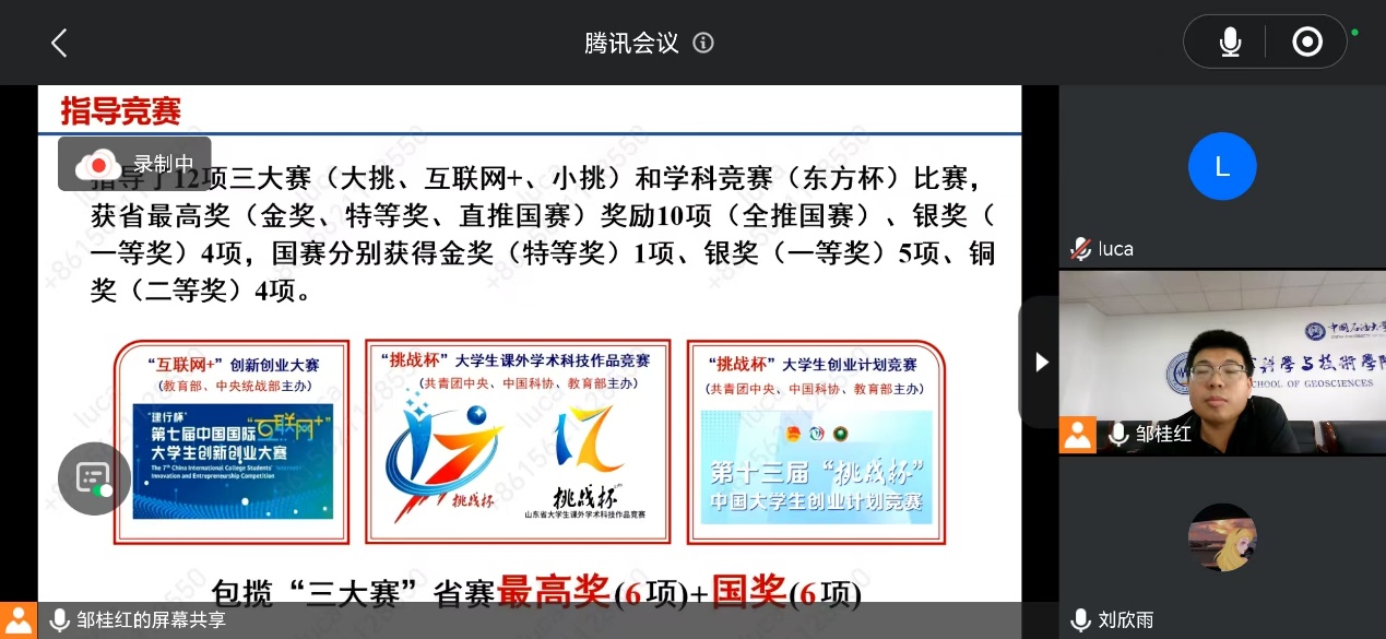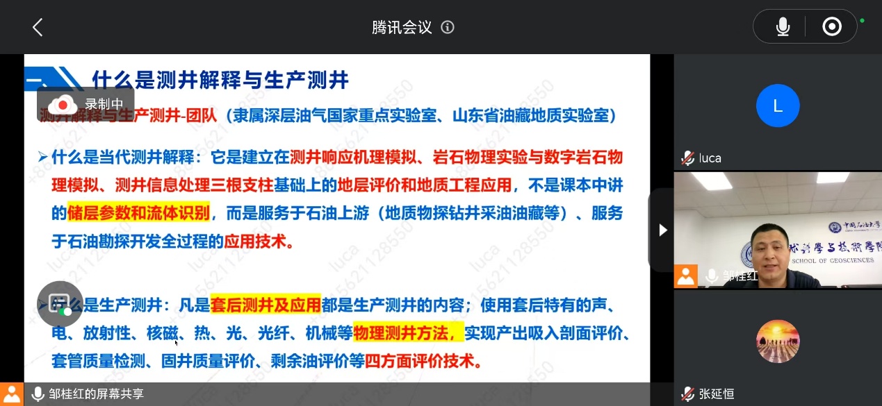 上午8:30,宣讲会在腾讯会议平台拉开帷幕,会议由陈雪莲副教授主持,学院研究生主管院长苏远大、各系主任、副主任、教学专员及研究生办公室教师参加。首先,苏远大教授以热情洋溢的致辞开场,介绍了学院的发展历程和亮点成果,指出学院拥有一流的科研平台、一流的师资力量、丰富的学科资源和优秀的科研成果,被誉为培养油气地学高级人才的摇篮,并深入浅出地介绍了学院的历史沿革、发展成就、培养特色以及招生情况。随后,地质系、资源系、地球物理系及测井系的主讲老师为师生们带来了精彩的系部介绍。他们不仅介绍了各系的教学资源、师资力量和科研成果,还分享了未来的发展规划和学术愿景。