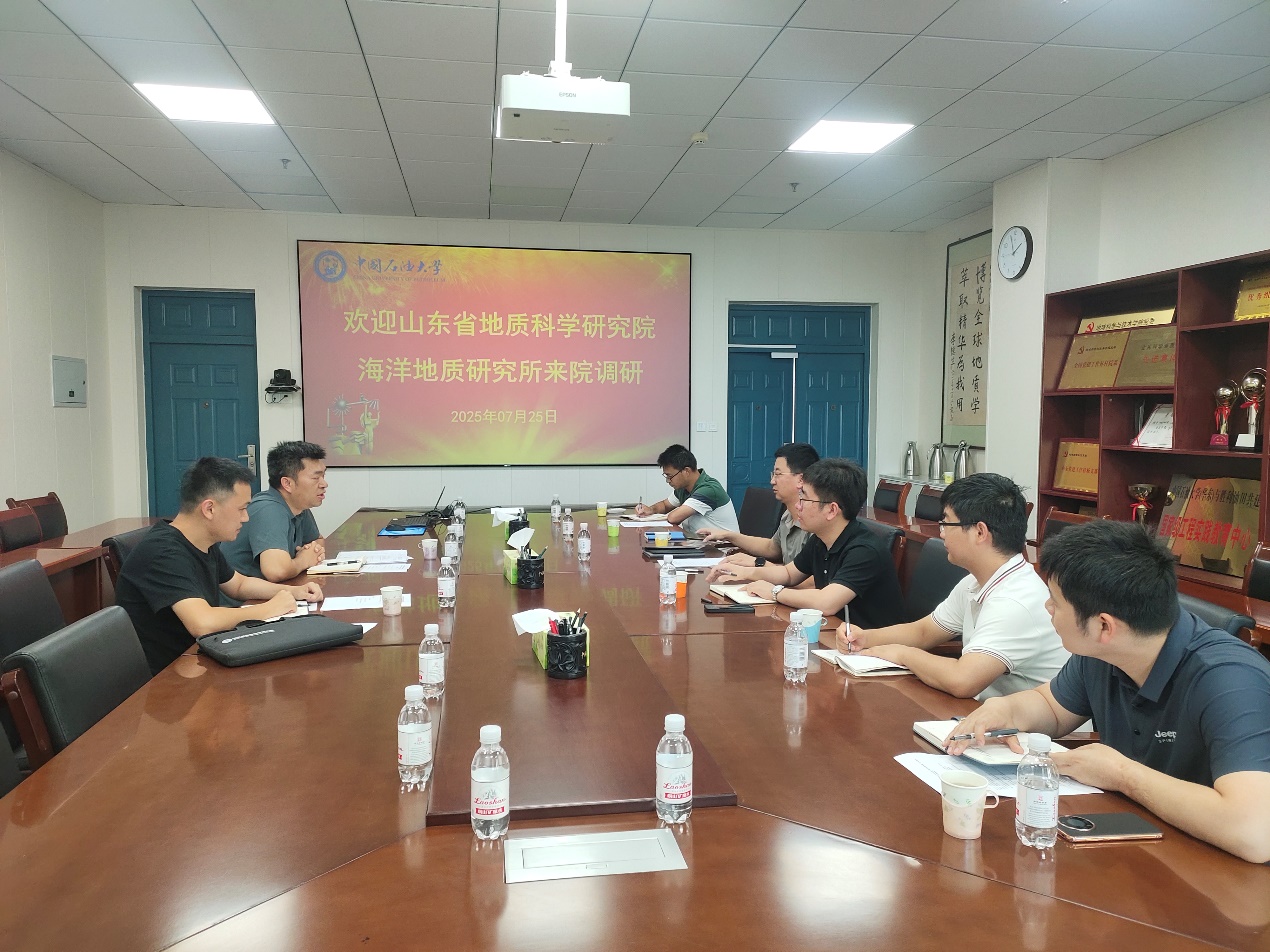 7月25日下午,山东省地质科学研究院海洋地质研究所张太平所长和唐璐璐副所长一行来院调研,学院副院长孟凡超主持座谈会并对张太平所长一行来校调研表示欢迎。张太平所长首先对学院的热情接待表示感谢,随后对山东省地质科学研究院及海洋地质研究所的基本情况做了介绍,重点对本次调研的目的、任务和要求做了详细介绍,希望通过本次调研,能够了解学校和学院在海洋矿产资源勘查方面的特色和优势,并希望就推动深海矿产开发全产业链发展征求学校和学院的意见。孟凡超副院长则向来宾介绍了学校和学院的整体情况,并就学院的学科和科研优势以及在海洋油气勘探方面取得的科研成果和成效做了详细介绍,希望通过这次面对面的交流可以为后期两个单位的合作打下坚实基础。座谈会上,双方还围绕未来科研合作、海岸带地质公园建设、实验室合作交流和人才培养等方面进行了交流。