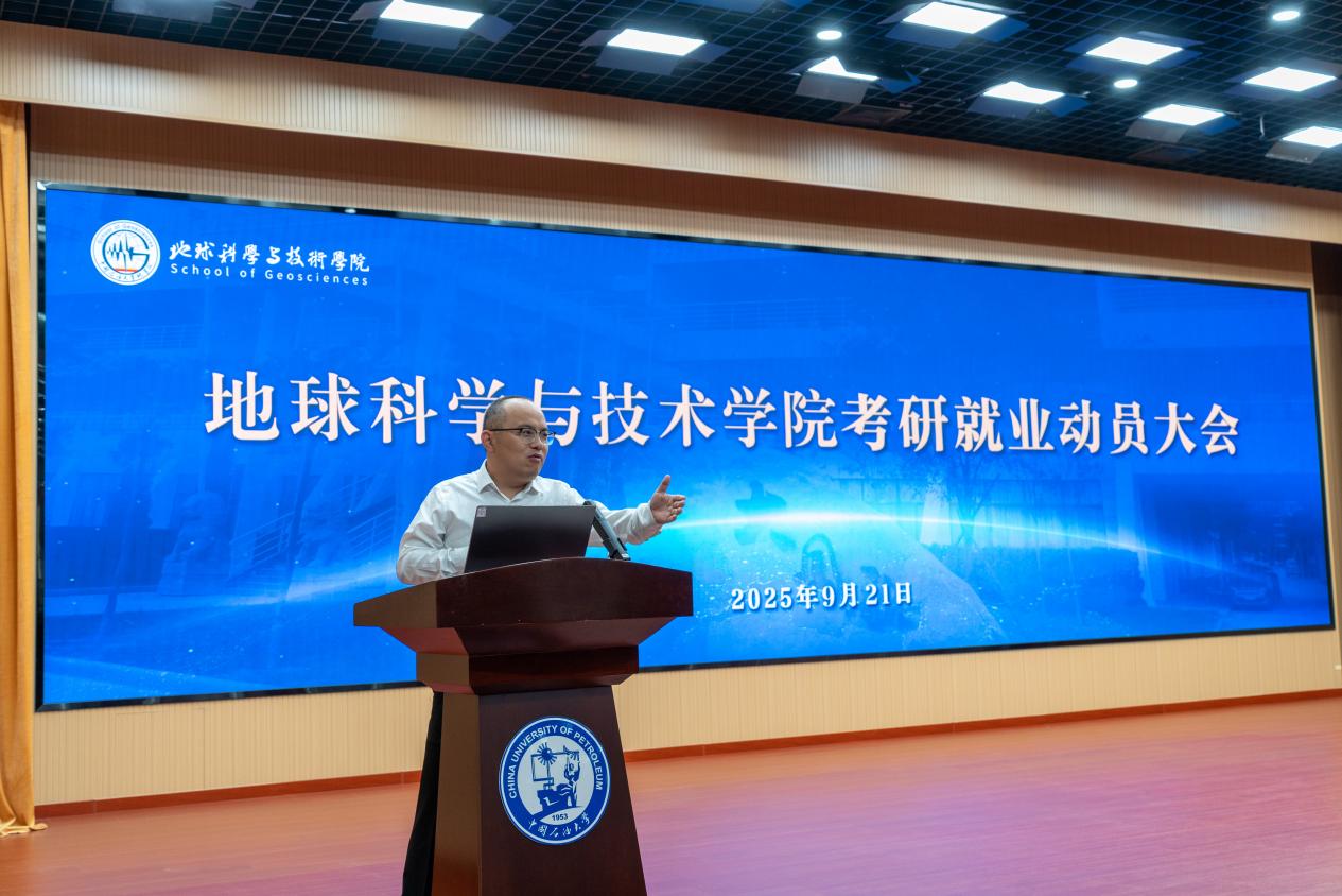 宗兆云围绕“平台赋能、导师引路、行业导向”的关键逻辑,详细介绍了学院的师资配置、科研平台布局及研究生培养成果。针对考研与就业规划,他着重强调油气行业的不可替代性,选择油气勘探行业升学就业是我院学子履行服务国家石油安全战略使命的要求,同时还可以获得稳定且前景广阔的职业发展平台。在随后的提问环节中,学生踊跃提问,宗兆云逐一耐心回应每个问题,现场互动氛围热烈,同学们受益匪浅。