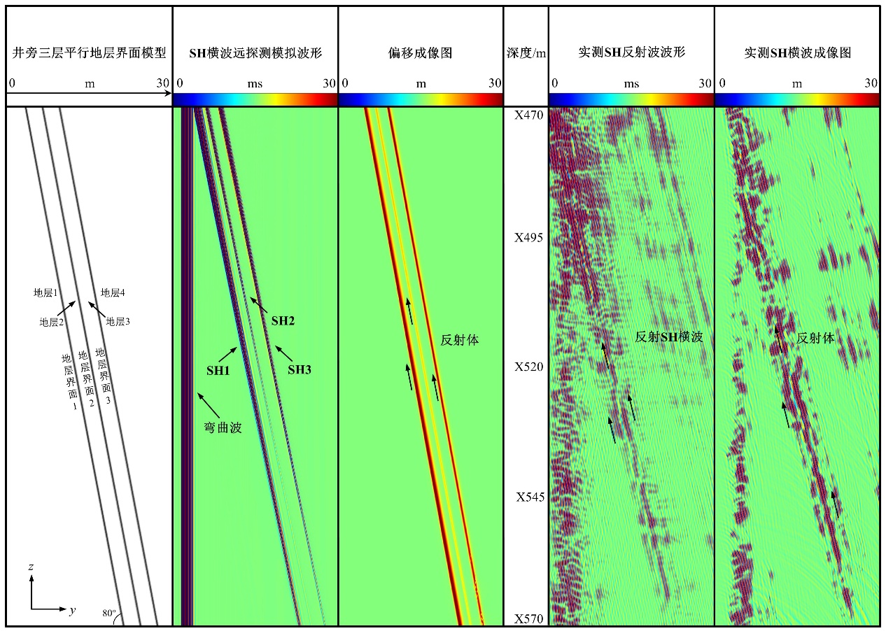 利用解析方法计算了井旁三层平行地层界面模型下的反射和透射SH横波声场,解析模拟和现场实测SH横波远探测数据偏移成像后均存在多个反射体,很好地解释了远探测成像中的多反射体现象。