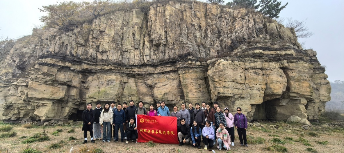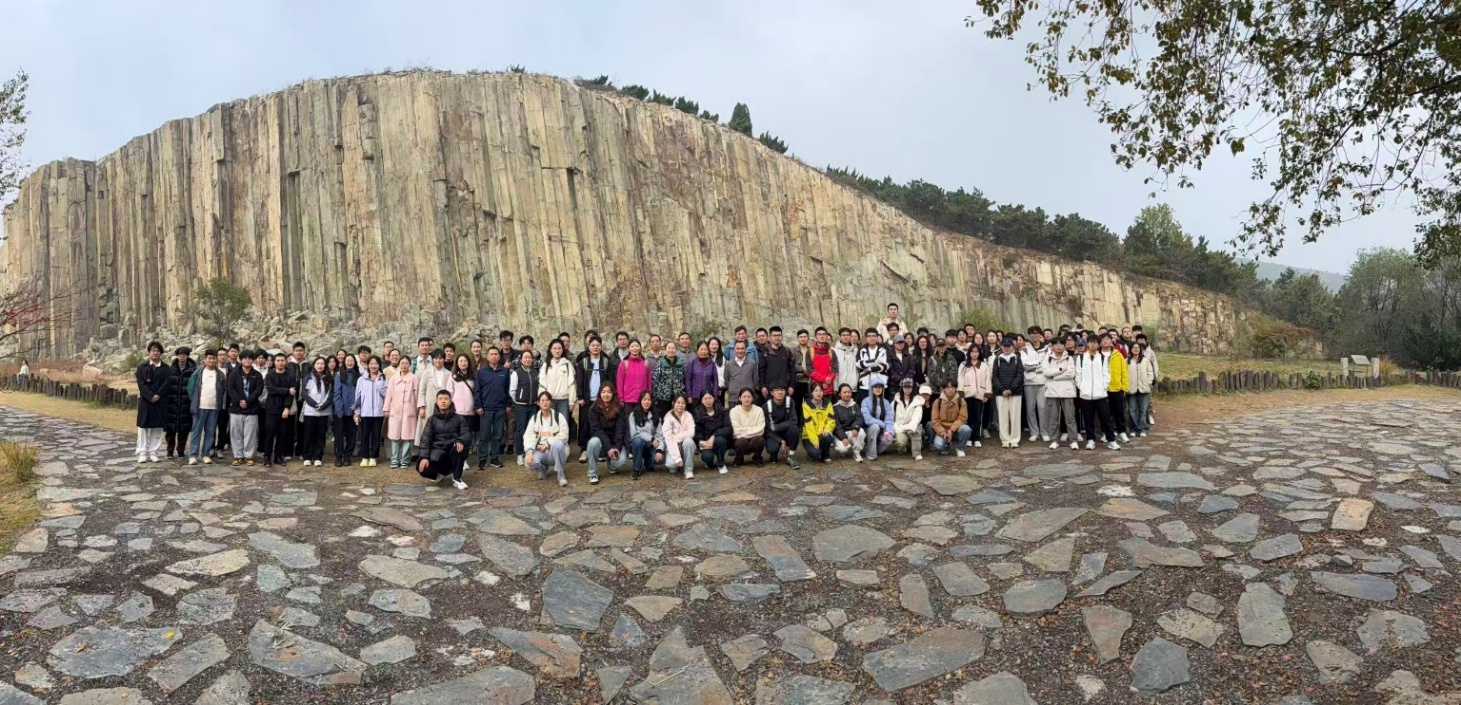 活动首站,37名师生党员赴马山地质公园开展现场研学。马山地质公园是青岛地区重要的地质遗迹保护与科研科普基地,园区内保存有柱状节理石柱群、沉积构造及接触变质带等多类型地质景观,被誉为“袖珍式地质博物馆”。这些珍贵遗迹充分展现了地壳演化过程中火山活动、沉积环境变化与构造变形的综合效应,是融合党建教育与专业教学的天然课堂。在资源系党支部书记张立强的带领下,党员们依次走近马山石林柱状节理、接触变质带等典型地质点位,详细了解其形成背景与演化过程。现场教学中,张立强结合地学专业知识进行了深入讲解,党员教师们亦立足自身科研方向,就区域火山作用、沉积演化与构造活动等问题展开热烈交流讨论。师生在实景中学习、在研讨中思考,进一步实现了理论知识与自然实例的紧密结合,深化了以专业优势服务社会发展的认识。参观过程中,资源系党员师生还与来自中国海洋大学的师生开展了现场交流,从地质遗迹保护和科普宣传等方面互学互鉴,进一步拓宽了思路,促进了院校间地学教育与党建工作的深度互动。