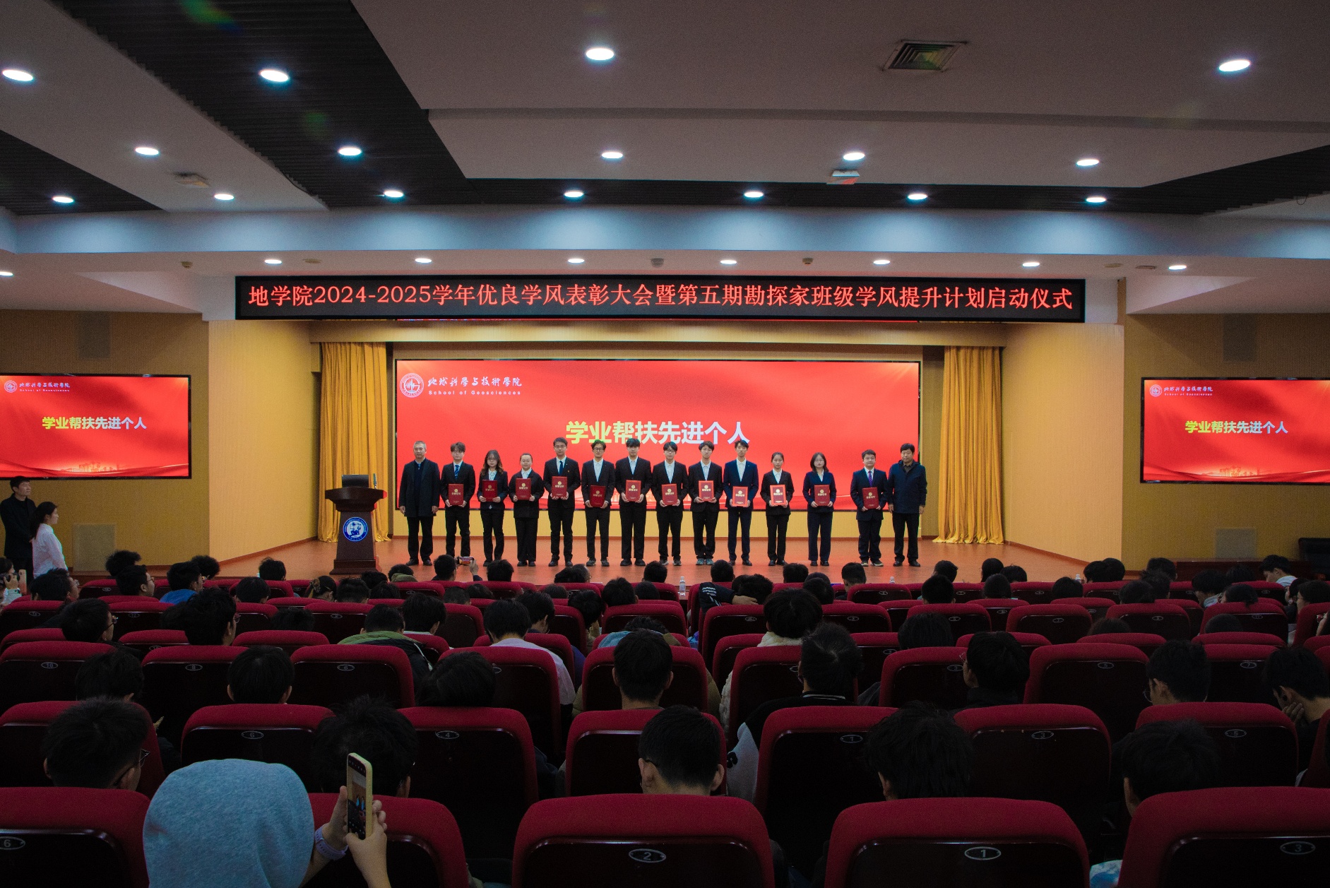 宗兆云表示,优良学风是学院落实立德树人根本任务、建设油气地学领域世界一流高水平研究型学院的核心支撑。近年来,学院紧紧围绕“为党育人、为国育才”初心使命,扎实推进学风建设系统工程,取得了显著成效。面对新起点、新形势,学院将持续强化学风建设与思政教育、就业导向的深度融合,推动学生工作与学科特色、成长路径精准对接,引导学生将学业追求与长远发展紧密结合。面对AI时代的挑战与冲击,宗兆云勉励现场学生,要“以学习为中心,走全面发展之路”,努力成长为堪当大任的地学英才,在服务国家能源战略和行业发展的进程中,书写属于自己的精彩篇章。