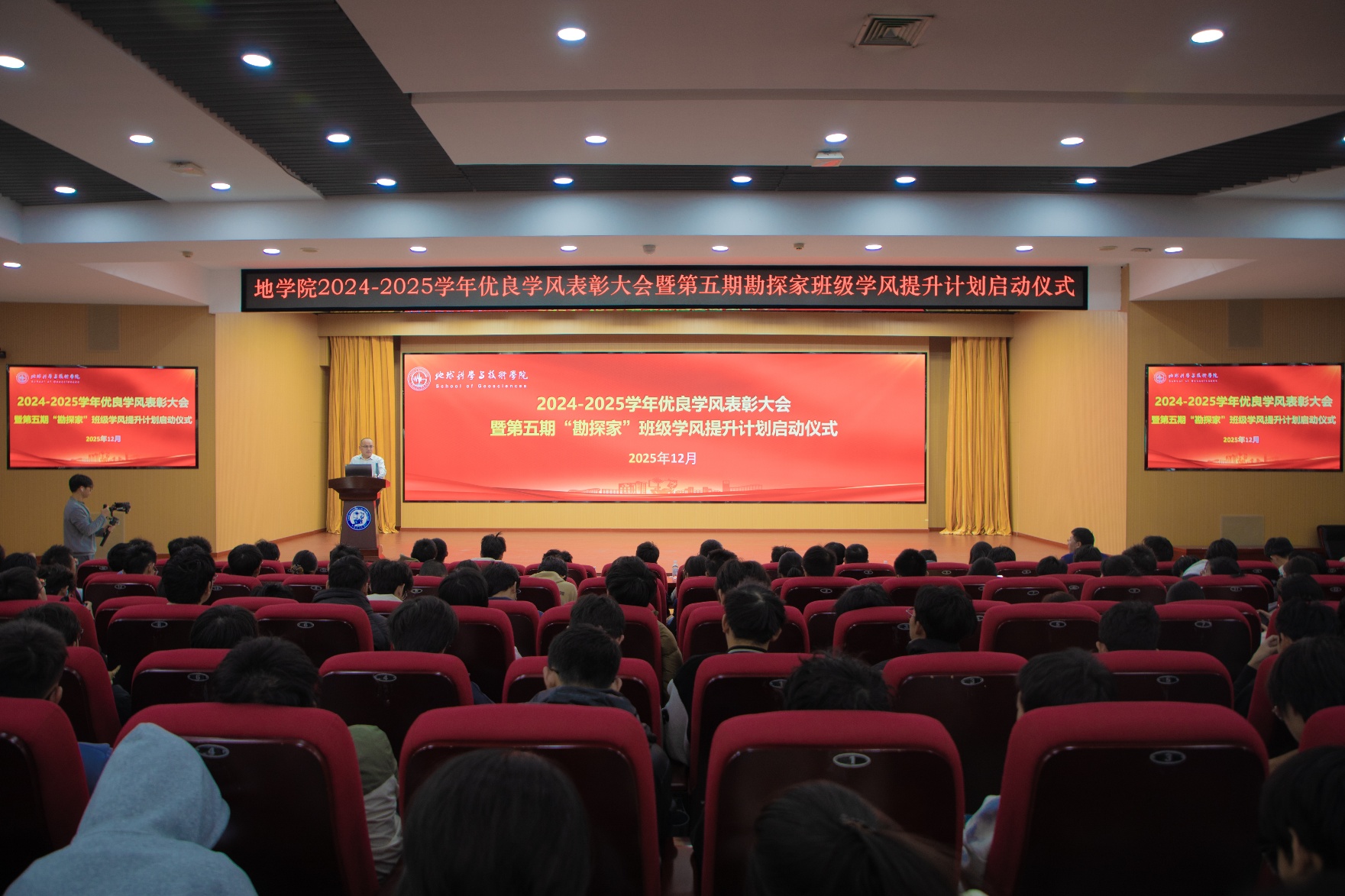 张宪国宣读《beat365唯一官方网站关于表彰2024-2025学年本科生学风建设优秀班集体、先进个人的决定》。他表示,希望受表彰的集体和个人戒骄戒躁,再接再厉,在今后的学习中不断取得新进步。全院学生要以他们为榜样,秉承“脚踏实地,胸怀全球”的院训,弘扬勘探尖兵的优良传统,努力成长为德智体美劳全面发展的社会主义建设者和接班人。