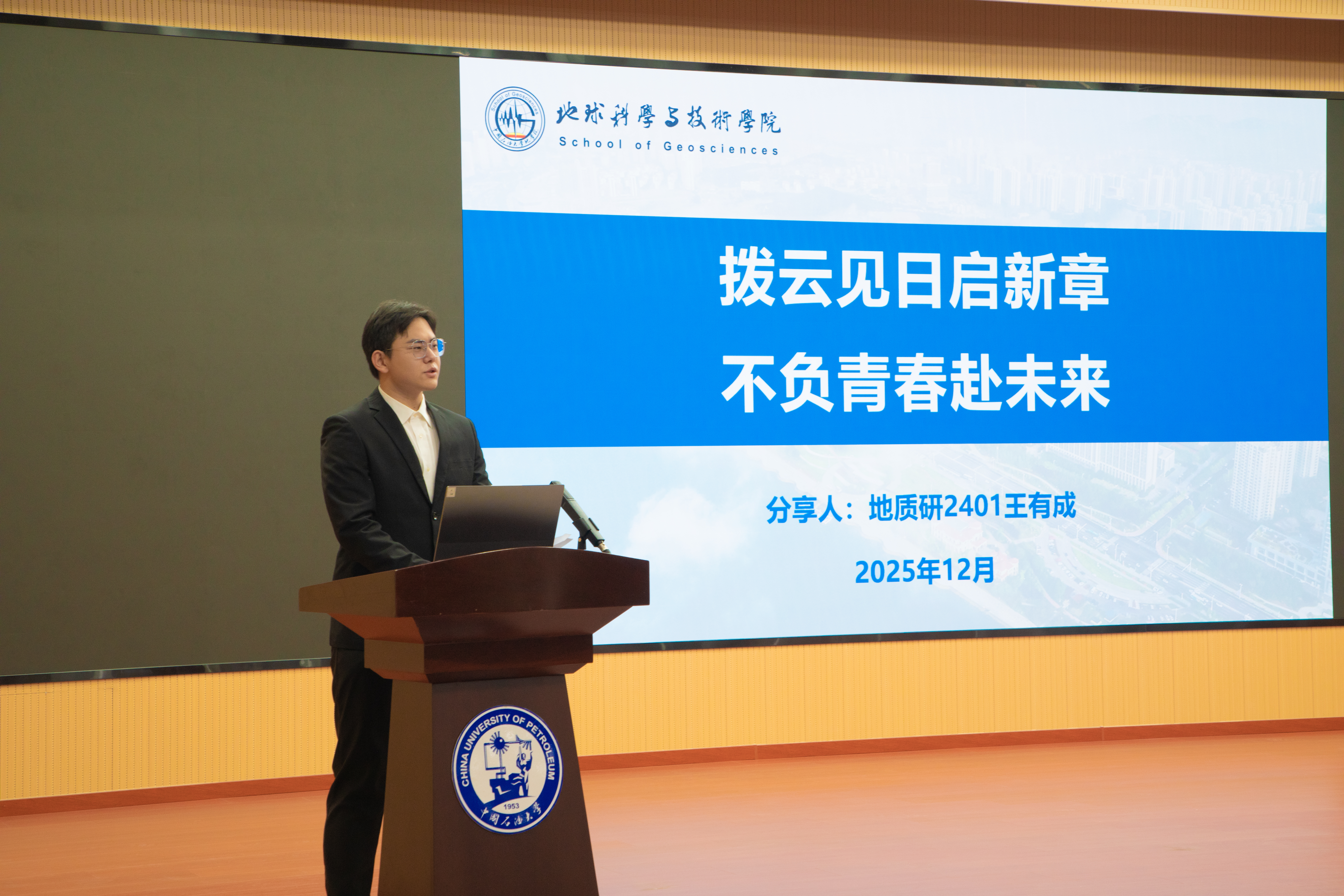优良学风标兵班代表本研地学2201班分享了以“星火铸魂领航计划、卓越学风导航计划、启动科探先锋计划、青年素养提升计划”助力同学全面发展的班级特色建设方案。优秀学生代表资源2201班周爽围绕思想铸魂、专业深耕、科研探索、实践担当分享了自己的大学经历,并寄语2025级新生珍惜学校和学院的平台和资源,明确目标,做好规划,主动学习。地质研2401班王有成分享了自己厚积薄发、奋力追赶的成长经历,用实际行动告诉同学们,每一次努力都能浇灌出成长的硕果,每一次坚持都能书写逆袭的篇章。