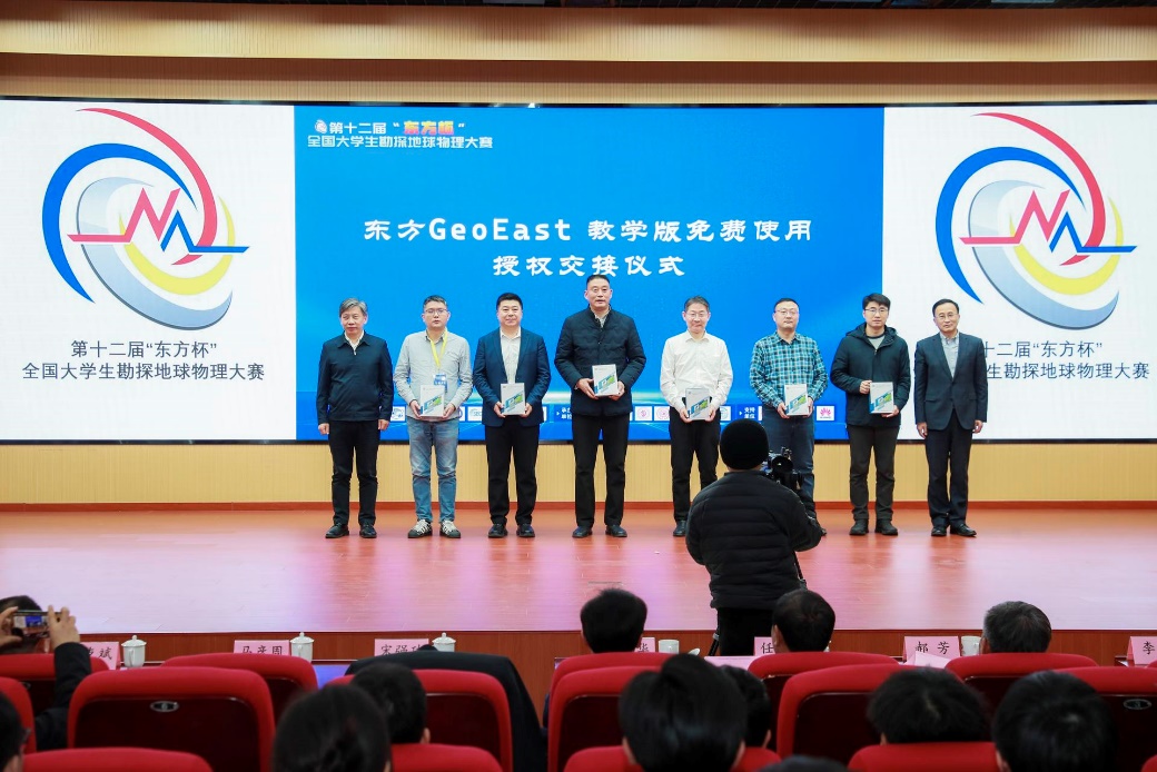 本届大赛自7月11日启动以来,得到全国高校广泛响应,吸引了28个省市209所院校的917支队伍报名参赛,累计收到完赛作品341项。各分赛区组建专业评审专家组开展预赛遴选,最终确定41所高校的128项作品晋级决赛。为确保评审工作的专业性与权威性,决赛评审组由来自中国石油、中国石化、中国海油、中国地质科学院、华为技术有限公司、中科曙光等单位的30名行业专家组成。经过严格评审,本届大赛共评选出特等奖7项、一等奖26项、二等奖89项。大赛颁奖典礼上还进行了东方Geoeast软件教学版免费试用授权交接仪式。