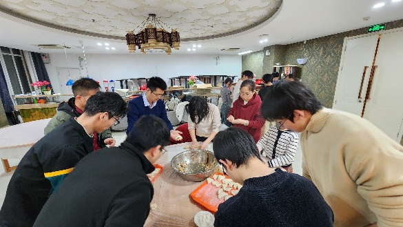 参观结束后,师生返回校园,共同参加“师生同乐,饺子迎新年”主题活动。大家围在一起,亲手和面、擀皮、包馅,气氛温馨融洽。范宜仁、邓少贵、王正楷、王磊、陈雪、王亚洲等老师与同学们围坐交流。多位学生轮流发言,分享入学以来的成长与感动,并表达对老师和同学的新年祝福。现场欢声笑语,洋溢着团聚的温暖氛围。